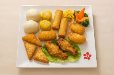 | 12 pièces - 2pcs pains chinois au porc, 2pcs raviolis crevette, 2pcs nems au porc, 2pcs beignets de crabe, 2pcs ailes de poulet et 2pcs crevette sur toast | ||||