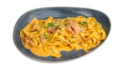 | viande de veau accompagnée de tagliatelles | ||
