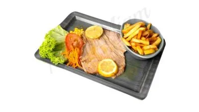 | accompagné de frites et salade | ||