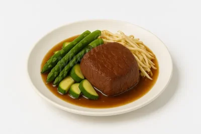 | filet de boeuf, asperges, courgettes et pousses de soja | ||||