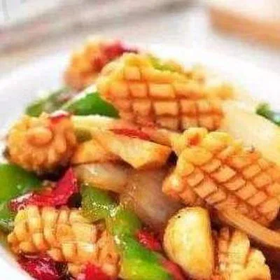 Les plats de calamars sont accompagnés de riz blanc, riz sauté ou nouilles sautées au choix.