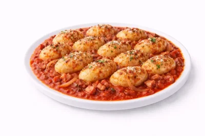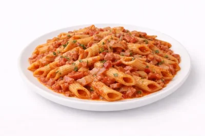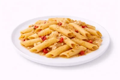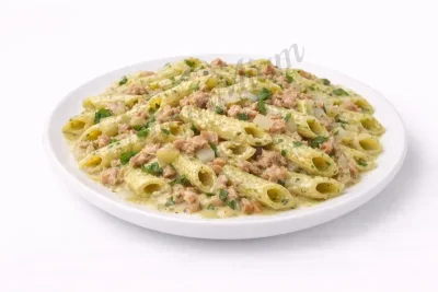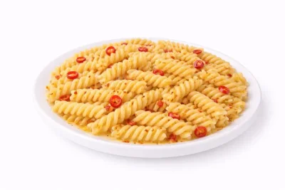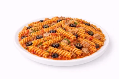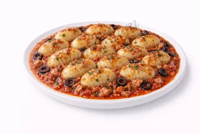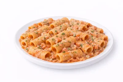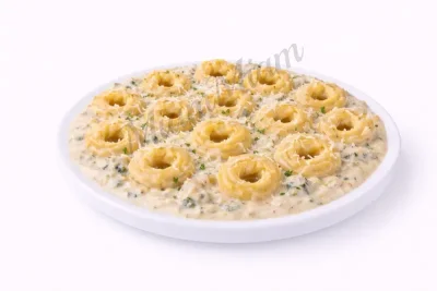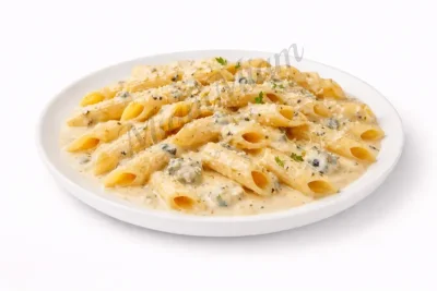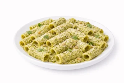 Les plats de pâtes gratinées sont accompagnés de parmesan.