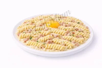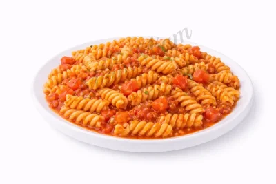 Les plats de pâtes sont accompagnés de parmesan et de 3 tranches de pain.